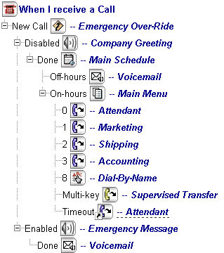 All of the power, flexibility and features available at the organization’s NP-UM Agent application are also available to every department, extension or mailbox within the organization. This is because all NP-UM Agent applications are built from combinations of the same basic building block -- the call box.