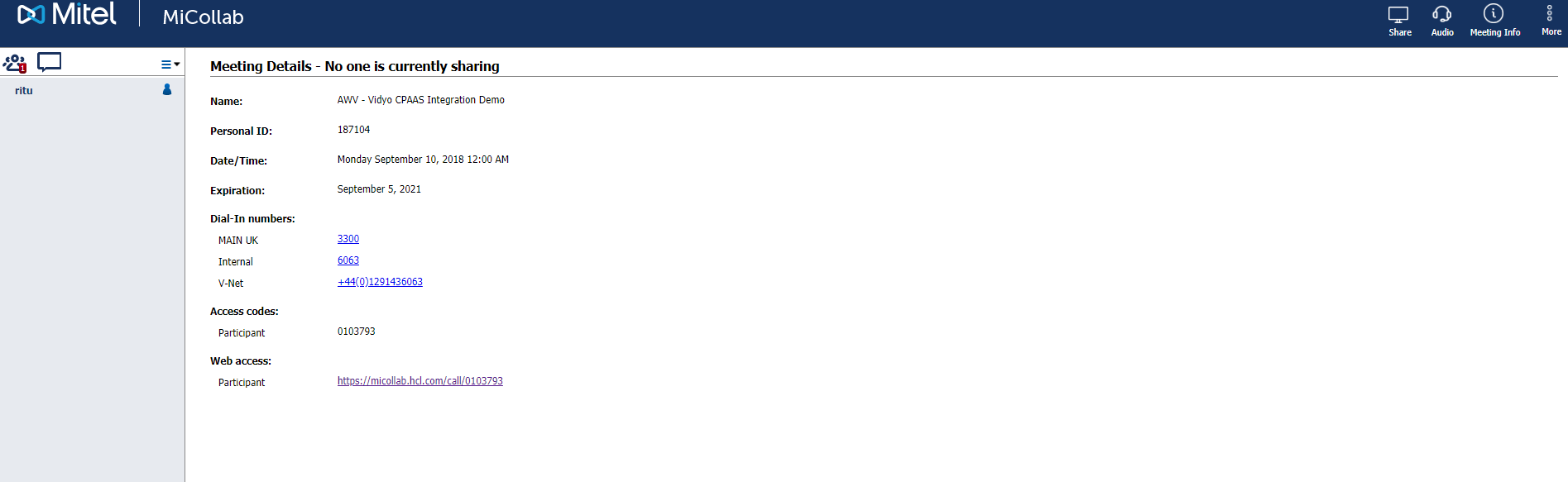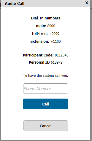 NOTE: Once the participant clicks on Join Audio , the audio prompt requests the participant to enter the personal ID, but it automatically enters the ID and the participants need not enter it manually.