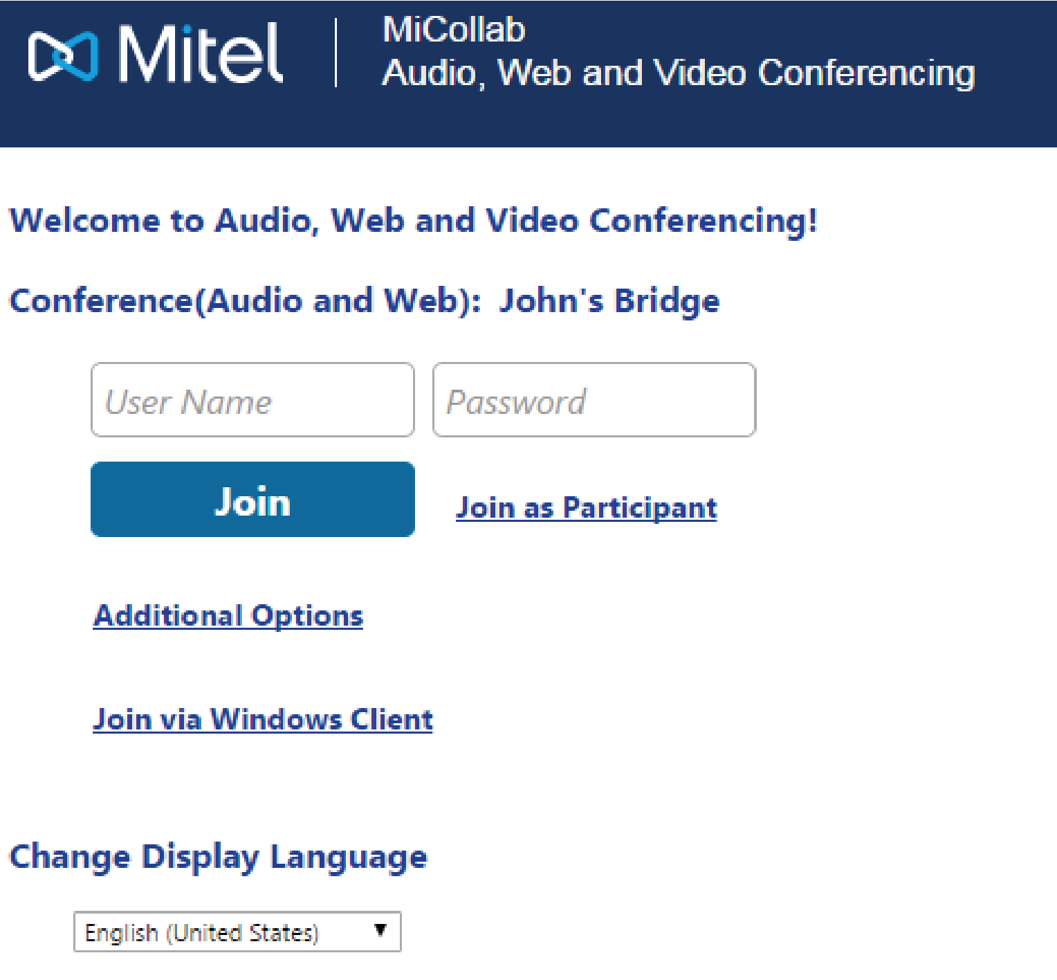The MiCollab Audio, Web and Video Conferencing Web Client enables you to join conferences as a Participant or a Leader without installing the Collaboration Client (Desktop Client) onto your computer or tablet. You can access the Web Client through a number of supported browsers.