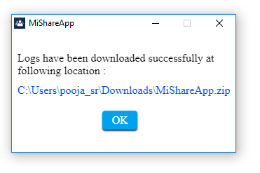 NOTE: A tooltip is displayed on hovering over the WebShare Logs option. Click Download app to download the MiShareApp application. Click Collect logs to navigate to help page on how to collect webshare logs manually.